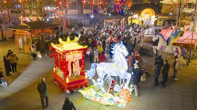 ■ 2月17日至3月4日,西青区杨柳青古镇举办第29届杨柳青灯展,以“年画映新灯舞西青”为主题,呈现具有“高大新奇特”“形色声光动”特点的光影盛会。