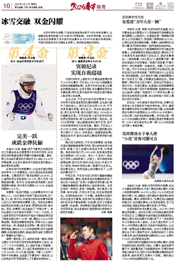 北京时间昨天凌晨,宁忠岩在速度滑冰男子1500米的决赛中,以破奥运纪录的佳绩(1分41秒98)夺得金牌。北京时间昨晚,王心迪又在自由式滑雪男子空中技巧的决赛中以132.60分的高分夺得冠军。中国代表团在米兰冬奥会上的第三、第四枚金牌如约到来。