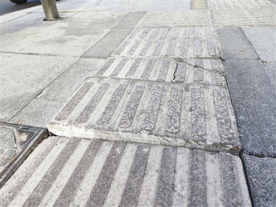 市民高女士反映,河东区十一经路与七纬路交口人行道上,一块盲道地砖松动翘起,给行人通行带来不便,望尽快修复。