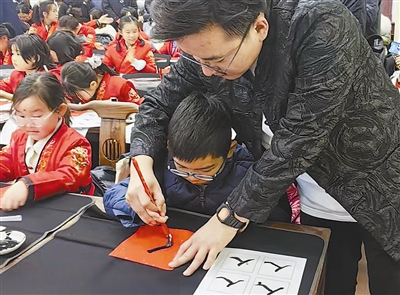 一撇一捺,描出一个大大的“人”字——昨日的天津文庙博物馆内,一群小朋友在浓郁的传统文化氛围与庄重仪式感中,开启了对未来学习生活的美好向往。这场由天津大学出版社策划发起、联合天津文庙博物馆共同主办的“文庙开笔·接笔传薪”传统文化研学活动,以“开笔礼”为载体,为孩子们带来了与众不同的新学期“第一课”。