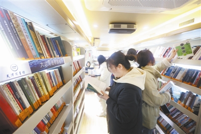 日前,天津图书馆汽车图书馆开进天津工业大学,并特设“运河文化”专区,方便师生深入了解天津发展历史。