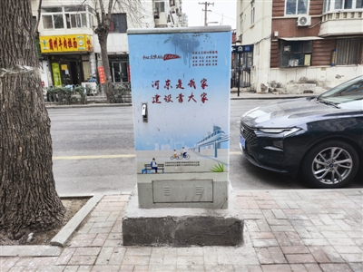 3月11日本版《镜头说事》栏目刊登图片,反映河东区八经路上一处通讯机箱基座受损、机箱转向问题。