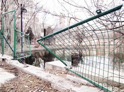 据附近原冰里小区居民孙女士介绍,护栏损坏问题已存在近两年时间。其间虽经过相关部门维修,但没过多久便再次遭到人为破坏,始终未能彻底解决。采访中,记者看到有市民带着孩子在仅几十厘米宽的岸边小心行走,身旁就是倾斜破损的护栏,稍有不慎就可能发生意外,十分危险。据了解,闸口处更换绿色网状护栏,本意是方便工作人员日常巡查作业,但不少市民为打捞鱼虫擅自进入河道区域,多次人为损坏护栏,既破坏公共设施,也将自身置于危险之中。
