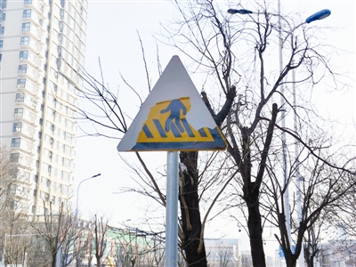 市民赵女士反映,南开区鼓楼西街由西向东方向,路边设立的一面交通警示牌牌面上,部分覆膜出现脱落缺失,希望有关部门尽快修复。文/摄 记者 刘波