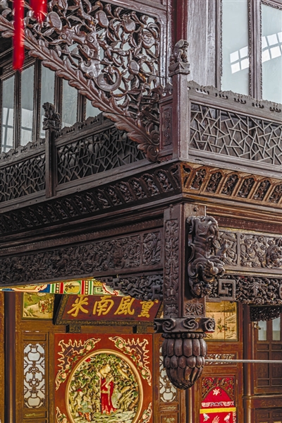 天津广东会馆的一砖一瓦、一梁一枋,无不诉说着近代天津作为南北通衢、华洋杂处的开放历程与商帮群体的奋斗故事。没有角柱支撑的戏楼,空间非常宽敞,展现了传统工匠的高超技艺。精细的木雕,寄托着商人们对美好生活的愿望。而建筑中融入的钢铁结构,也体现了当时人们紧跟时代、勇于创新的想法。