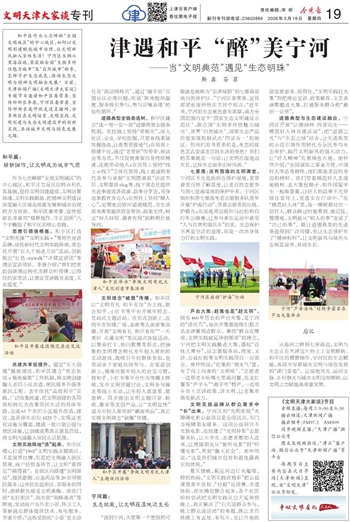 从海河之畔到七里海边,文明与生态正在天津这片热土上交相辉映。和平区的精耕细作、宁河区的生态赋能,共同书写着城市文明与绿色发展的“津门答卷”。让湿地风光、运河文脉、乡村烟火与城市文明交相辉映,以文明之力赋能高质量发展。