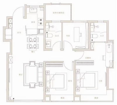 方正户型成为年轻人追逐居住时尚的亮点,独有的智能衣储系统等巧思布局为每一位居住者实现了空间尺度感和功能上的双重进阶。