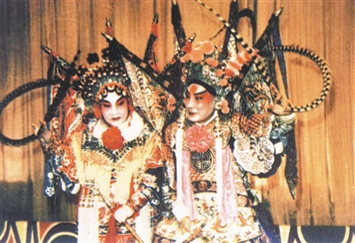 1985年6月28日,厉慧良(右)与胞妹厉慧敏(左)为重庆残疾人福利基金会成立义演《杨宗保与穆桂英》。