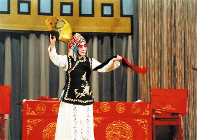 1984年10月21日天津市第一工人文化宫“爱我中华、修我长城”义演中,66岁的陈素真展示独具风格的“辫子功”。