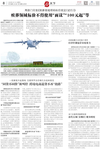 据新华社北京3月31日电(记者 赵怡宁 朱高祥)记者31日从国家市场监督管理总局获悉,为落实新修订的《殡葬管理条例》,加强殡葬领域价格监管,近日,市场监管总局会同民政部印发《殡葬领域明码标价规定(试行)》,为各类经营者明码标价提供分类指引。
