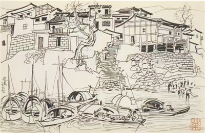日前,四川省社会科学院唐林(曾任该院艺术研究中心主任),微信发来吴冠中一幅素描,说是吴老笔下的《达县江边》,画于47年前的3月(恰是我入伍十年之后)。老唐试图弄清,这究竟是达城的哪处渡口?经他请教若干“老达州”,莫衷一是,均答曰:“似恍似惚,看不出来。”