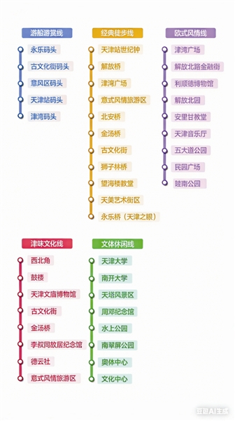 寻味主题,感受烟火与津派文化。五大道赏花区配套相声演艺、文创市集;游客可品尝煎饼馃子、耳朵眼炸糕等本地美食,体验杨柳青年画等非遗代表性项目;夜间可乘船游览海河,观赏城市夜景。