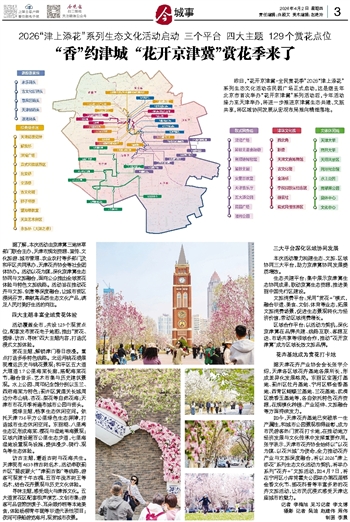 昨日,“花开京津冀·全民赏花季”2026“津上添花”系列生态文化活动在民园广场正式启动,这是继去年北京市首次举办“花开京津冀”系列活动后,今年活动接力至天津举办,将进一步推进京津冀生态共建、文旅共享,将区域协同发展从宏观布局推向精细落地。