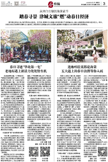 民园1920街区又潮又美,商铺林立,来往游客打卡消费;五大道公园钟楼的整点“跑马”报时,吸引整个公园的游人争相拍照……作为海棠花节主场,和平区“津遇和平·拾光海棠”主题系列活动将于今日全面启动,记者昨日走访五大道多个点位,感受全面升级的多元业态,一场火热的“春日经济”即将与市民游客实现双向奔赴。