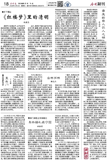 此外,清明时节最为盛行的民俗还有斗草、蹴鞠、射箭、放风筝等。值得注意的是,清明放风筝的习俗南北方都有,但斗草并非如此。比如香菱和小丫头们斗草时提到的“夫妻蕙”,北方并没有这种植物,作者写这段时应是以南方为背景。证以《红楼梦》中语言的“南腔北调”,此书应是以南方一部底稿为基础,曹雪芹到北方后修改而成。这个判断,也与《红楼梦》开篇提到的“披阅十载,增删五次”成书过程相契合。