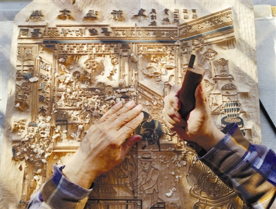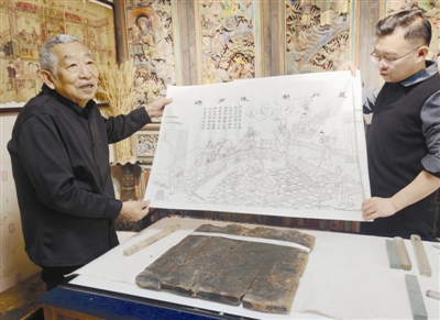 霍庆有为寻找清末民初老刻版《赵州桥》患病,愈后凭技艺手绘线稿。