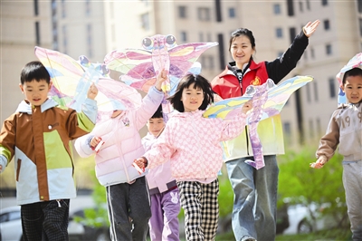 近日,北辰区双环邨街碧春园第二社区联合碧春园幼儿园,举办手工风筝主题活动。