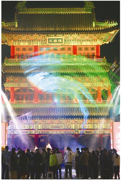 位于中新天津生态城的“海边戏剧小镇”——滨海鲤鱼门已完成夜景灯光焕新升级。记者 刘欣 摄