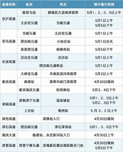 预计集中在5月1日上午(出程)、5月3日—4日下午(返程)。