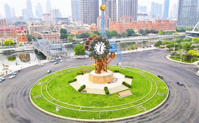 日前,位于世纪钟下方的绿地变身成为一块巨型欧式表盘。据了解,现场通过在世纪钟下方的圆形绿地上铺设钢架和罗马数字,形成一个直径约80米的巨型表盘,与世纪钟相呼应。目前,正在安装灯光设施,全部工程将于月底完成。