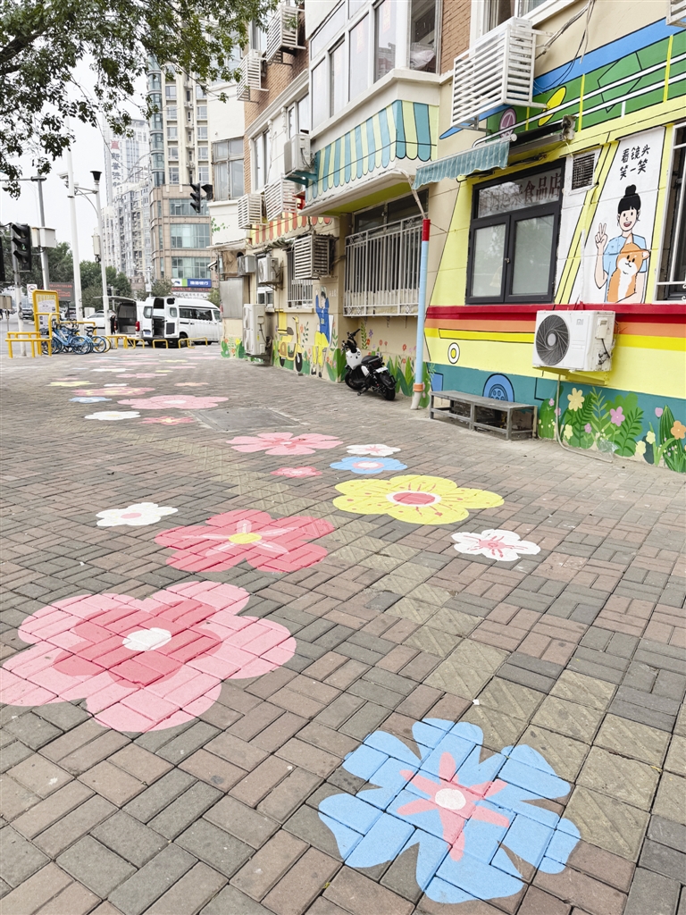 昨日,河西区挂甲寺街道前程里社区开展的墙体彩绘美化工程亮相,一幅幅色彩鲜艳、富有创意的墙体彩绘吸引众多市民驻足打卡。彩绘内容涵盖生活场景、社区文化等元素,与南楼煎饼商铺交相呼应,成为城市街头的新亮点。