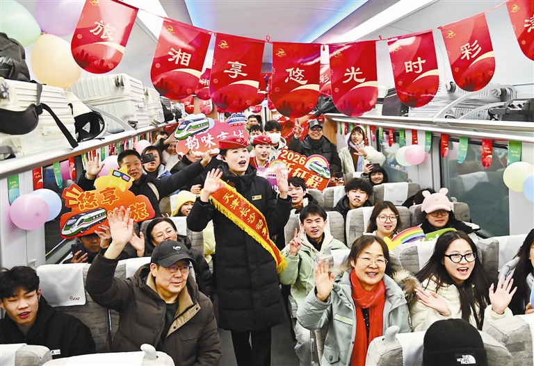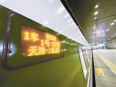 据国铁北京局天津客运段津沙车队列车长付婷婷介绍,文化交融是这趟列车的鲜明标识。列车一等卧精心设置“印象哏都”“韵味京城”“魅力长沙”三大主题车厢,悬挂天津杨柳青年画、北京京剧脸谱、湖南湘绣等特色挂画,让旅客在车厢间领略南北文化交融的独特魅力。