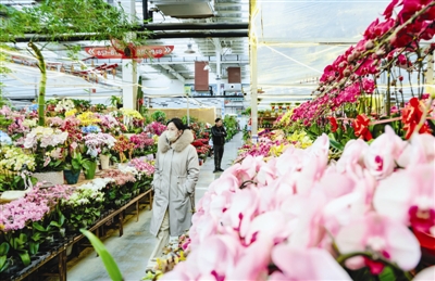 昨日,正值农历腊月首日,津城气温大幅走低,寒意袭人。本市各大花卉市场内却暖意融融,琳琅满目的各色花卉缤纷绚丽,不少年宵花陆续上市,吸引不少市民前来挑选、赏花。图为西青大寺镇荣大花卉春意盎然。