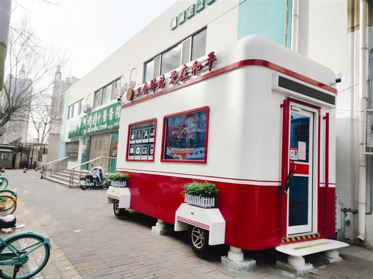 进入大寒节气以来,本市气温已降到零度以下。在沙市道福林里小区对面的人行道上,一间红色的活动房特别引人注目,活动房上面清晰地写着八个大字“工会驿站 爱在和平”,从窗户上的白色标识能够了解到,这间工会驿站的功能是“主要为广大户外劳动者提供免费饮水、雨衣、临时休息、无线网络、报纸书刊、急救药品、免费加热、手机充电服务”。