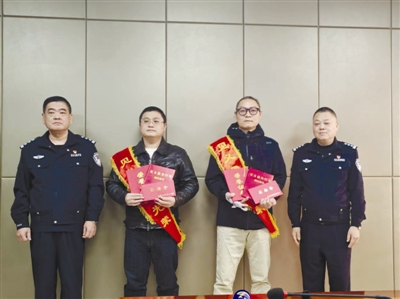 “杨××与刘玉坤两名同志合力挽救了一条生命的行为,被确认为见义勇为行为。他们的行为彰显了天津市民的无私大爱和城市温度。”1月26日下午,红桥区见义勇为协会在西沽派出所,对西沽公园见义勇为的两名市民杨先生和刘玉坤进行表彰,现场授予《见义勇为行为确认证书》《见义勇为行为荣誉证书》,并给予奖金。