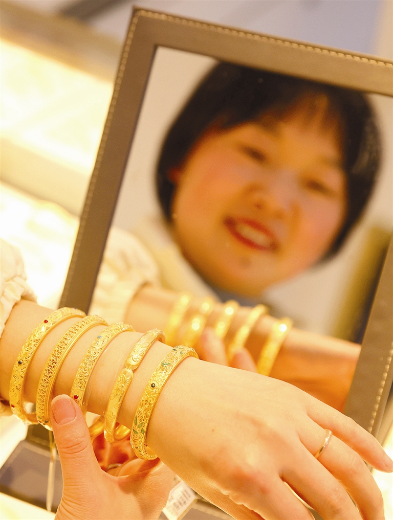 以某知名品牌的黄金饰品为例,今年年初报价每克1357元。1月10日突破每克1400元关口,报价每克1406元。1月23日突破每克1500元关口,报价每克1542元,当日每克上涨44元。1月28日突破每克1600元关口,报价每克1618元,当日每克上涨33元。1月29日又突破每克1700元关口,报价每克1706元,当日每克上涨88元。昨天,报价跌回至每克1685元,当日每克下跌21元。尽管如此,该品牌黄金饰品一个月里身价也每克上涨了300多元。