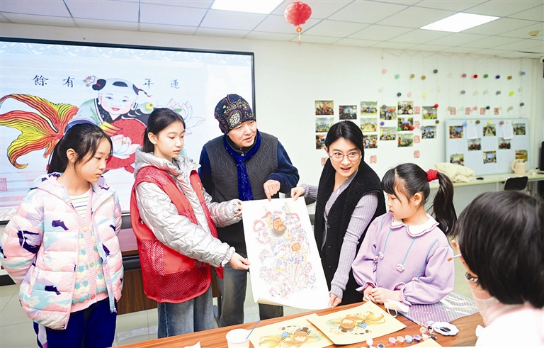 为丰富辖区青少年寒假精神文化生活,让青少年近距离感受传统民俗艺术魅力,近日,南开区万兴街华章里社区依托“五爱”教育阵地,开展2026年寒假冬令营第一期主题实践活动,邀请辖区青少年动手为杨柳青年画着色,在笔墨彩绘中感受民俗年味,体验传统艺术的独特韵味。活动伊始,到场的专业老师向青少年细致介绍杨柳青年画的起源历史、艺术特色、题材寓意与制作流程,从线条勾勒、色彩搭配到人物造型,结合经典年画作品,让孩子们直观了解“吉庆有余”“福寿双全”等经典题材背后的吉祥寓意,激发孩子对传统民俗艺术的探索兴趣。在手绘创作环节,社区为孩子准备了杨柳青年画拓印底稿、画笔与水彩颜料,专业老师现场手把手开展教学,结合底稿讲解色彩搭配要点与上色技巧,示范均匀填色、晕染过渡的基本方法。老师耐心指导每一位孩子执笔、填色,纠正涂色手法,鼓励大家在尊重传统样式的基础上大胆搭配色彩,完成属于自己的年画作品。