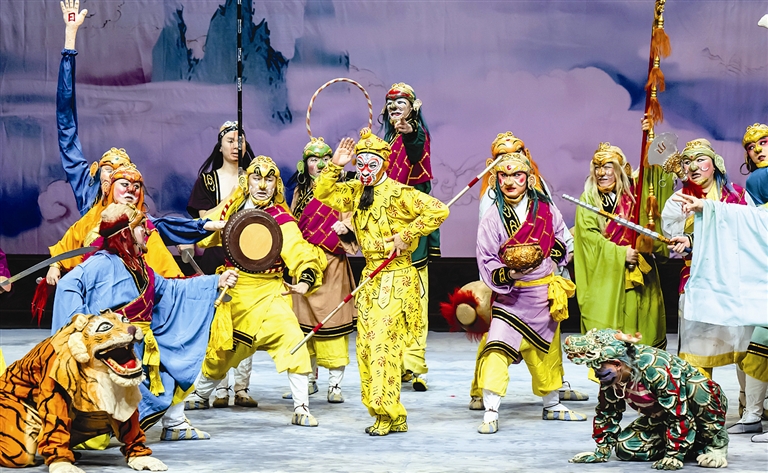昨天下午的中华剧院里,铿锵热闹的锣鼓声中,由天津市青年京剧团优秀青年演员、央视全球美猴王争霸赛金奖得主唐春园领衔主演的京剧《大闹天宫》,震撼上演。