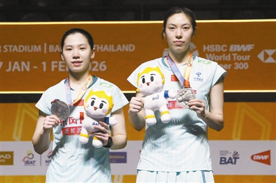 北京时间昨天,2026年泰国羽毛球大师赛落幕,本站比赛国羽派出年轻球员出战,仅有女双组合鲍骊婧/李怡婧(上图左)闯入决赛,最终以1比2不敌印度尼西亚组合阿玛莉亚/拉马丹蒂,获得亚军。此外,男单朱轩辰、男双组合胡珂源/林祥毅均止步4强。新华社发