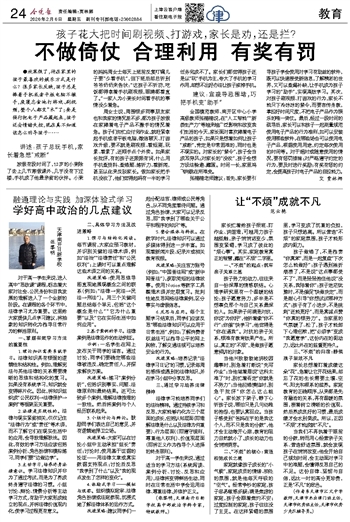 张楠楠老师建议:首先,家长要引导孩子学会使用对学习有助益的软件,既可以快速接受新信息,了解精彩的世界,又可以查漏补缺,让手机成为孩子学习的“助手”,实现高效学习。其次,对孩子刷视频、打游戏的行为,家长不能只下冷冰冰的禁令,而要言传身教,掌控好时间尺度,不把电子产品作为娱乐的唯一倚仗。最后,经过一段时间的疏导后,家长可以和孩子一起商量规范使用电子产品的行为准则,如可以安装使用哪些软件,在哪些场合可以使用电子产品,根据使用用途,约定每次使用的时间等。对于超时或随意使用的情况,要有惩罚措施;对严格遵守约定的行为,要及时进行奖励;有奖有惩的约定,会提高孩子对电子产品的自控能力。