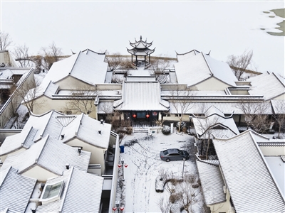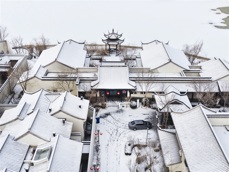 昨日,本市部分地区降雪,从空中俯瞰,宛如一幅展开的水墨画卷。