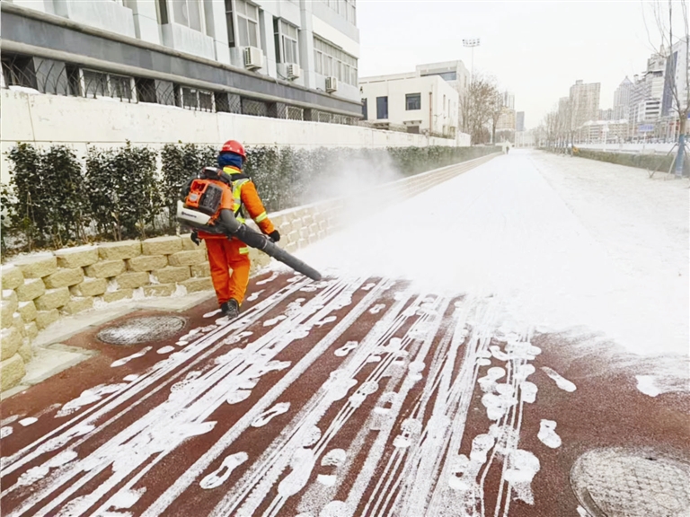 城市治理需要高科技加持,在去年入冬前,本市环卫部门就组织了全市清雪演练,新型清雪设备的加入成为“亮点”。针对不同路面,有的区配备了大型除雪车,这些车可以清理暴雪后的路面;有的区配备了适合非机动车道的清雪车,保证骑行人员的安全。小巧的吹雪机,除了燃油动力的这一种,有的区还购买了电力吹雪机。无论哪种款式的吹雪机,作为城市人行道物理清雪的核心设备,其高效灵活、全域适配的特点,既实现了即时的道路通行保障目的,更是城市精细化管理的体现,让城市清雪工作更科学、更贴心。文/摄 记者 徐燕