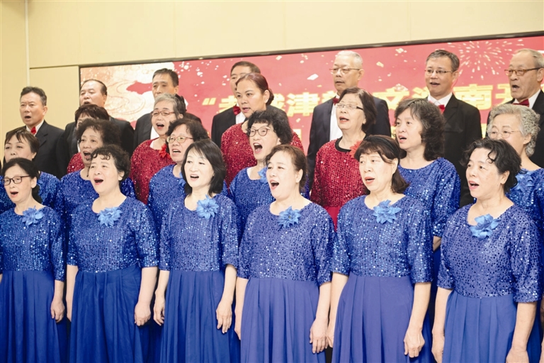 整场演出形式多样、内容丰富,合唱、戏曲、独奏、舞蹈等精彩节目轮番登场。演出在追梦合唱团的《四渡赤水出奇兵》《祝福祖国》大合唱中拉开序幕,演员们歌声嘹亮、精神饱满,用激昂旋律点燃现场气氛。社区京剧团的“京剧联唱”节目扮相精致、唱腔醇厚,尽显京剧艺术独特韵味。南开区文化馆志愿者带来的柳琴独奏《青花瓷》,旋律悠扬婉转,让观众沉醉其中。 文/摄 记者 史嵩