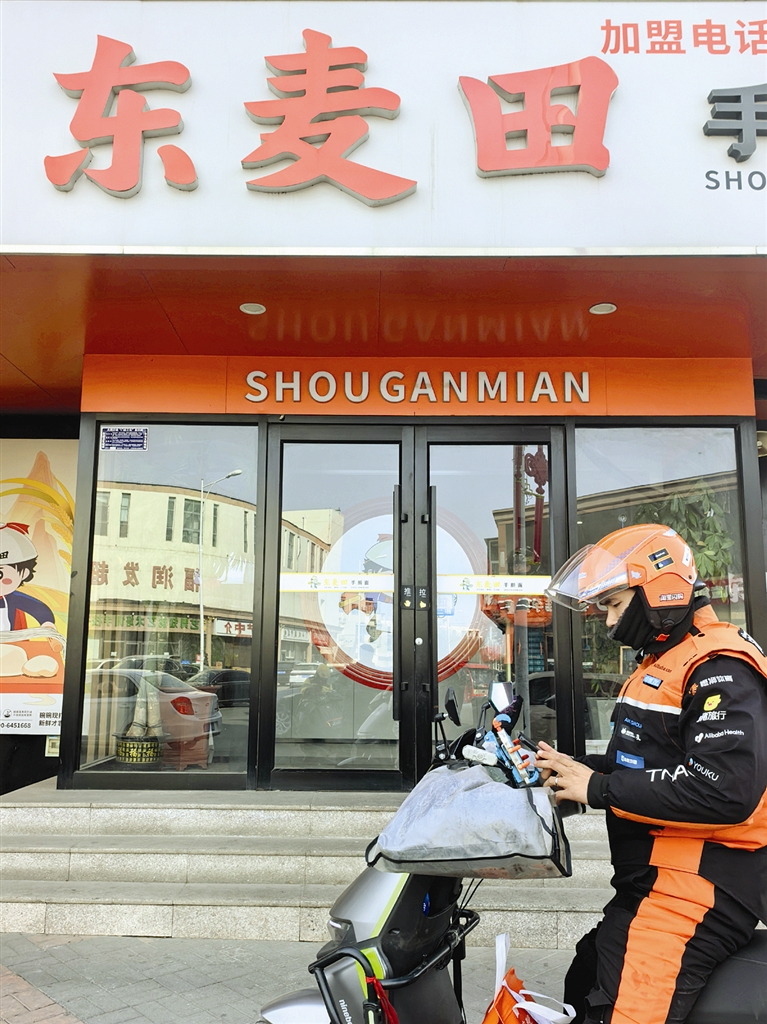 手机提示音响起,他接到了今天的第一单,一份捞面,送往3.7公里外的陈大公路。