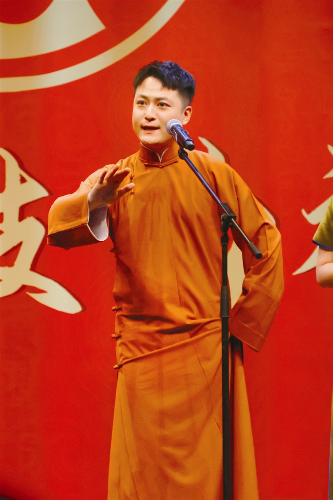 开始深入学习后,王浩桐对这门艺术有了深刻认知:“快书高度讲究字音平仄,兼具文学性与音律科学性,得‘依字行腔’,而且身段圆融和气息贯通也很重要。”他打趣道,这不仅能提升艺术表现力,还有养生价值。
