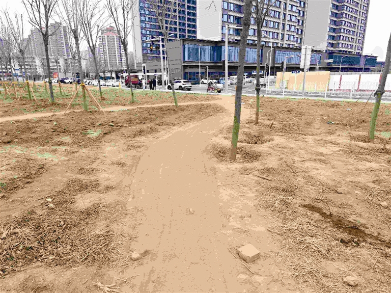 记者根据线索来到现场,发现此处已经恢复成绿化带的样子。不同的是,绿化带上被非机动车碾压出一条“土路”,不时有快递员、外卖员和业主骑着电动自行车横穿。“以前送外卖挺方便,不知道为啥路没了,如果绕行泽清路,还得多走好几公里,抄个近道能快点。”一位外卖员说。不一会儿,一位业主推着电动自行车上了便道,在绿化带的土路上颠簸穿行,他抱怨道:“好好的路拆了改成绿化带,越改越不便民。”