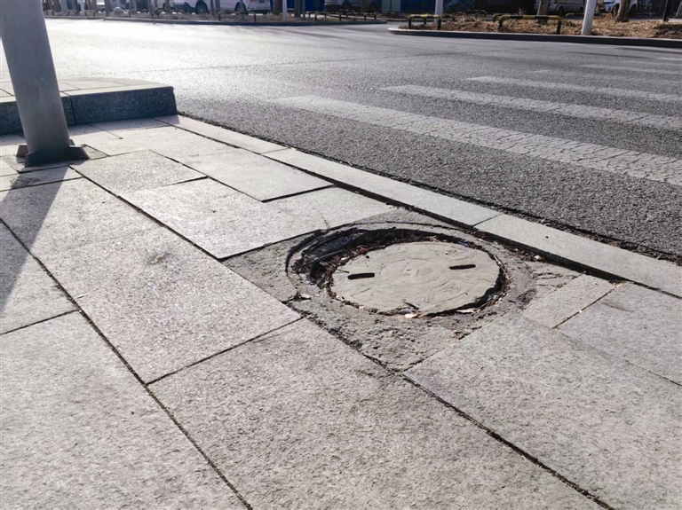 市民孙先生反映,南开区保阳道与华坪路交口,一井盖发生塌陷,给过往行人带来安全隐患,希望相关部门抓紧修复。 文/摄 记者 胡智伟