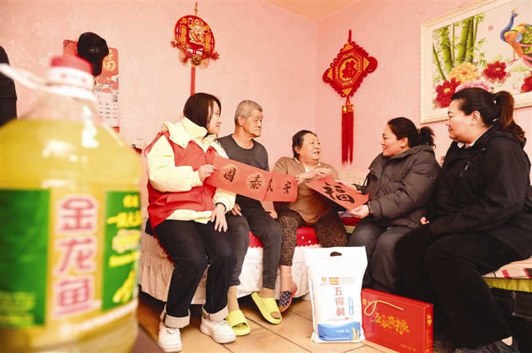 春节的脚步日益临近,为让辖区困难、独居老人感受到新春的暖意与社区的关怀,北辰区佳荣里街道开展“新春慰问送关怀”活动。社工与志愿者化身“暖心使者”,将精心准备的白面、杂粮、食用油、春联“福”字等慰问品送到老人手中。