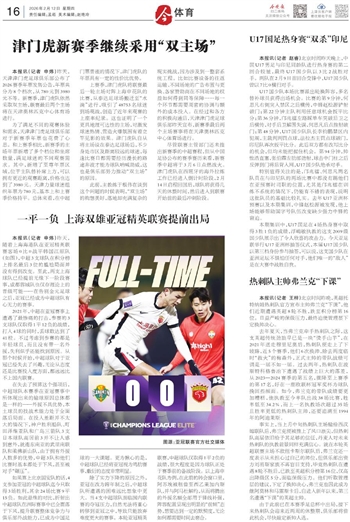 | 今晚报 体育 16 2026-02-121 2026年02月12日 星期四 |