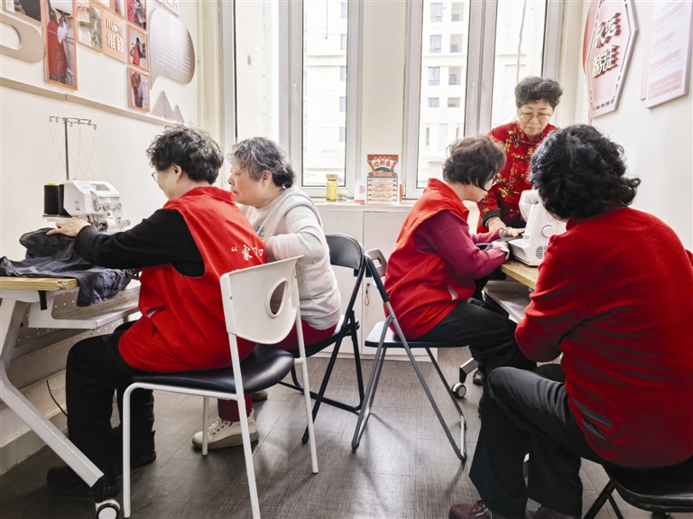 飞针走线之间,她们叮嘱的话也像线一样绵长。“天冷了要多穿点。”“这两天血压稳不稳?”一件衣服补好了,一席家常也唠透了。孤独被驱散了,心也被熨帖得暖暖的。她们常说,听到老人一句“有你们在,心里真踏实”,比什么都强。