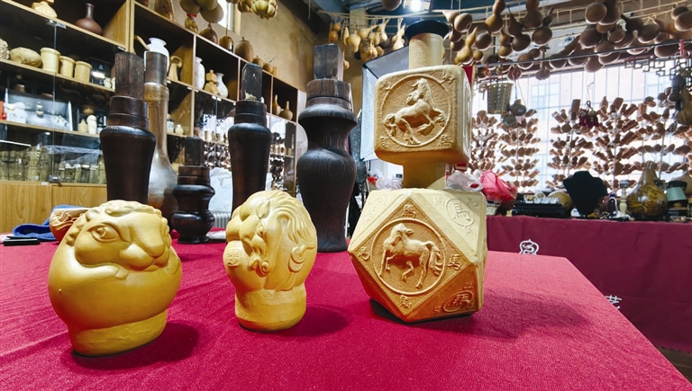 去年央视总台的元宵节晚会上,周深和毛晓彤手拿的“九子离火葫芦”就出自赵伟之手。作为这项非遗技艺的第四代传人,赵伟以葫芦为载体,将马年吉祥寓意、宫廷文化底蕴与现代生活需求相融,“这些创意作品,延续了葫芦招财、纳福、辟邪的传统寓意,让非遗作品实现多元化延伸。”赵伟说。