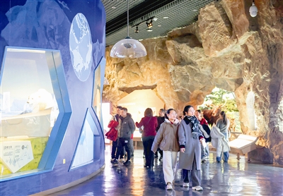 昨日是春节假期最后一天。本市各大文博场馆依旧人气旺盛、热度不减。图为天津自然博物馆内参观者络绎不绝。