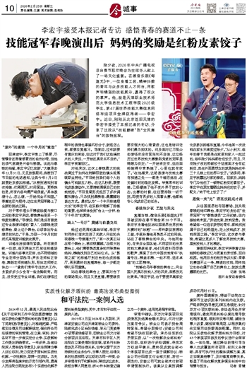 技能冠军春晚演出后 妈妈的奖励是红粉皮素饺子