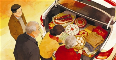 父亲搬来最后一箱东西,是母亲提前几天就忙着蒸好的黏豆包和年糕,软糯香甜,还带着蒸笼的余温,是我从小吃到大的味道。他试着关上汽车后备箱时,箱盖却因为物件装得太满微微翘起,合不上缝隙。他没有丝毫不耐烦,弯腰俯下身子,小心翼翼地规整后备箱的东西。他把腊味、卤味等往中间拢了拢,把那袋白面往最里面挪了挪,又轻轻按压了一下装年糕的箱子,生怕用力过猛压坏了吃食。他反复调整了三四遍,直到所有东西都摆放稳妥,才终于听到“咔嗒”一声轻响,后备箱稳稳扣严实。父亲站起身,随手拍了拍身上的灰尘,脸上露出一丝如释重负的笑,仿佛是完成了一件天大的事。那一瞬间,他眼角的皱纹在晨光里愈发深刻,那是岁月赋予的印记,也是慈祥的痕迹。我懂得,这些寻常不过的吃食,都是他们能给予我的最好的东西,是藏在烟火气里最浓的惦念,是说不尽道不完的父爱和母爱。