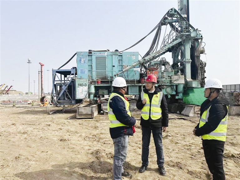 昨日上午,北京大兴国际机场新建项目施工现场,天津建城基业集团有限公司基础公司总经理崔强正在和现场工作人员沟通TRD的施工情况。“这是让我特别有感情的一个项目,是我们公司进入北京市场的首批项目之一,也是国家级重点项目之一。从2016年首次进场到现在,我们陆续在这个大项目的多期多处进行施工。”崔强指着现场正在作业的机械设备说,“大兴国际机场项目让我们开拓了新的施工工艺、完善了硬件设备,这也成为我们进一步开发异地市场的契机,在很多项目竞争中树立了优势。”