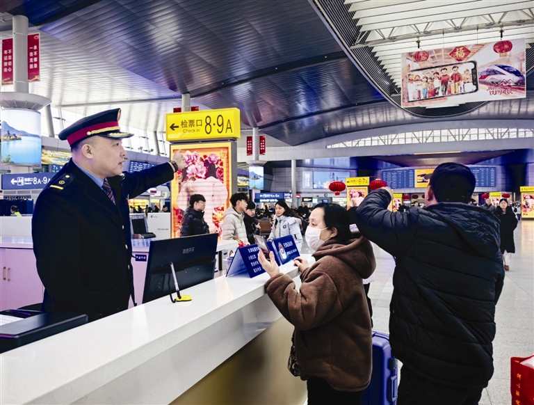 为应对高密度客流,天津站提前开展客流分析研判,精准锁定高峰时段、重点车次和关键通道,动态优化客运组织方案,实现“未堵先疏、科学应对”。车站全面加派人力,增派80余名骨干人员和青年志愿者,在站台、出站通道、扶梯口、出站口等易拥堵关键部位,实行定岗、定人、定责,全天候盯控现场秩序。